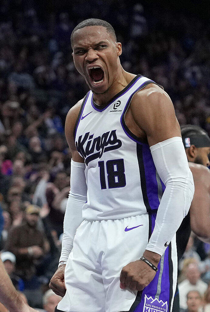 今天又是威少燃尽的一天——面对勇士的年轻人们,威少又双叒聊发少年狂,出战35分钟,全场13投9中,其中三分球4投3中,独揽23分16篮板10助攻,让国王在缺少了小萨、拉文和基根-穆雷的情况下主场力擒勇士。