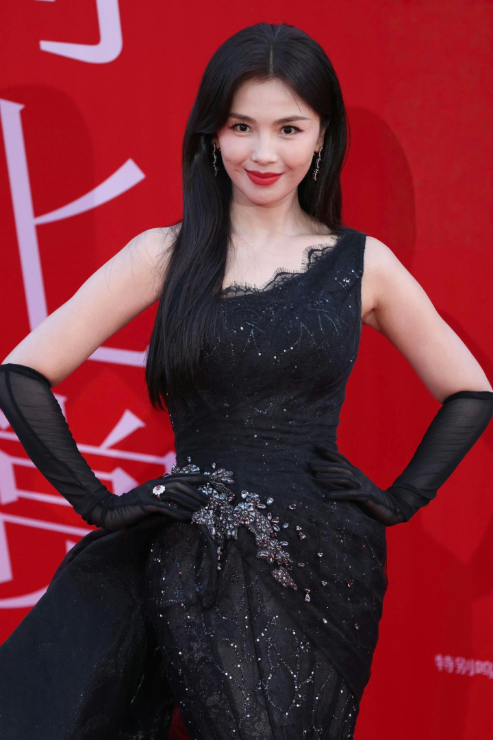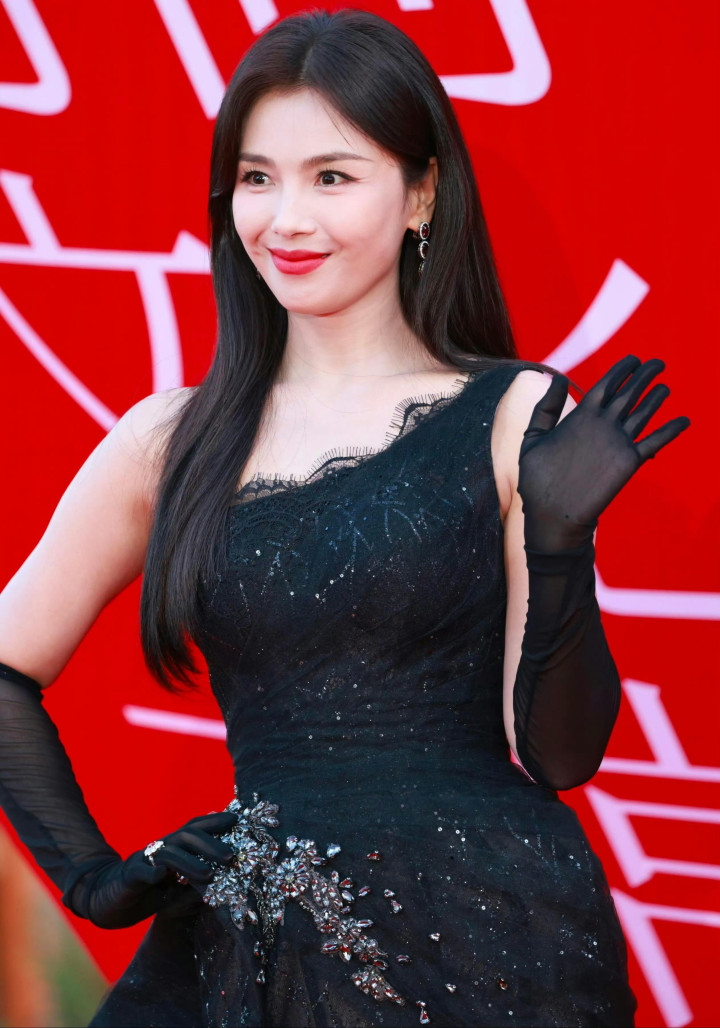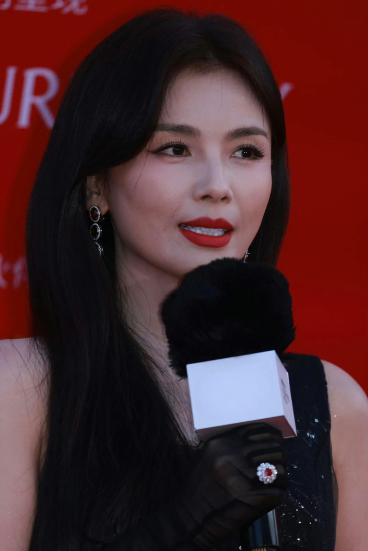 刘涛, 黑发飘飘, 红唇魅惑, 黑丝手套, 每一个表情都好有魅力